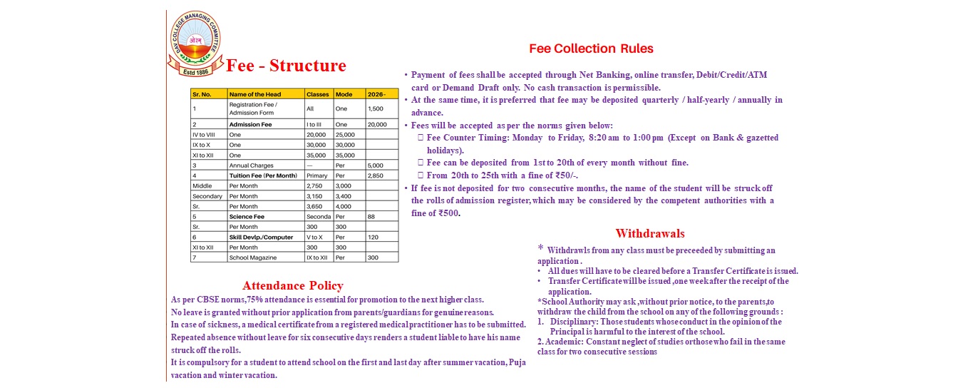 The shortlisted students can take admission to class XI Session (2026-27) from 30.3.2026 to 10.4.2026 on working days between 8:00 a.m. and 1:30 p.m. The admission fee and other details pertaining to admission will be updated on the website/ school notice board on 28.03.2026.
