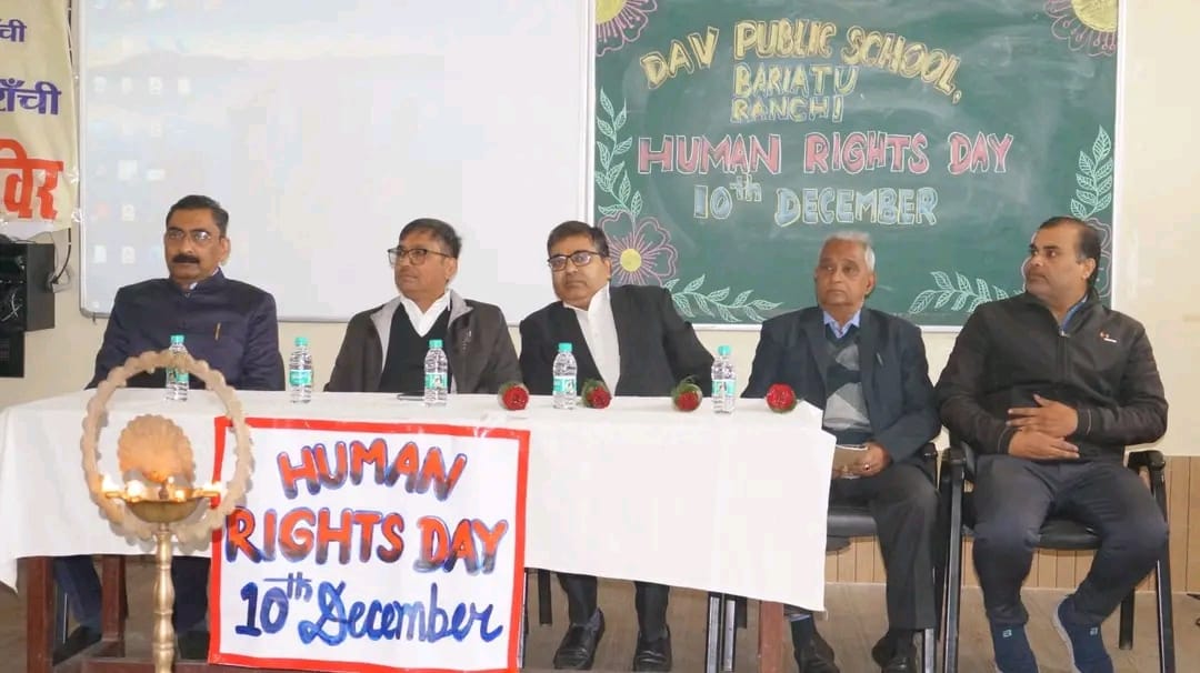 Awareness Programme on Human Rights Day Organized at D.A.V. Bariatu Under the joint aegis of Jharkhand Legal Services Authority (JHALSA) and District Legal Services Authority (DLSA), an awareness programme was organized for students on the occasion of Human Rights Day by the Legal Literacy Club at D.A.V. Public School, Bariatu, Ranchi. The objective of this programme was to provide students with information on child protection, human rights of common citizens, constitutional provisions for the development and upliftment of the underprivileged sections of society, and to sensitize them towards human rights. Representatives from the Jharkhand Judicial Services Authority and the District Judicial Services Authority shared information on the statutory provisions related to human rights. Pankaj Sharma introduced students to the Juvenile Justice Act, while Rajesh Kumar Sinha provided information about free legal services. They also gave satisfactory answers to students’ queries on topics such as migrants’ rights, children’s right to maintenance after parental separation, reasons for the indifference in punishing public servants holding prestigious positions even when adequate evidence of wrongdoing exists, and provisions for protection from dowry-related violence. Principal Sanjay Kumar Mishra welcomed the guests and addressed the students, stating that it is essential for us to possess a sense of compassion. Through compassion, we can nurture a feeling of equality towards all of humanity. We must be aware of our fundamental rights so that we can safeguard ourselves and help protect others as well.